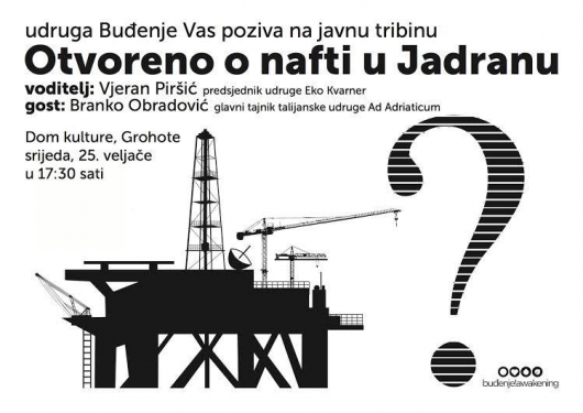 Tribinu organizira udruga Buđenje. Tribina će se održati u Domu kulture Grohote, u srijedu, 25. veljače 2015. s početkom u 17.30 sati.